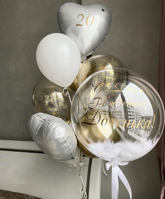 1 баблс с индивидуальной надпсиью, наполнением и атласной лентой